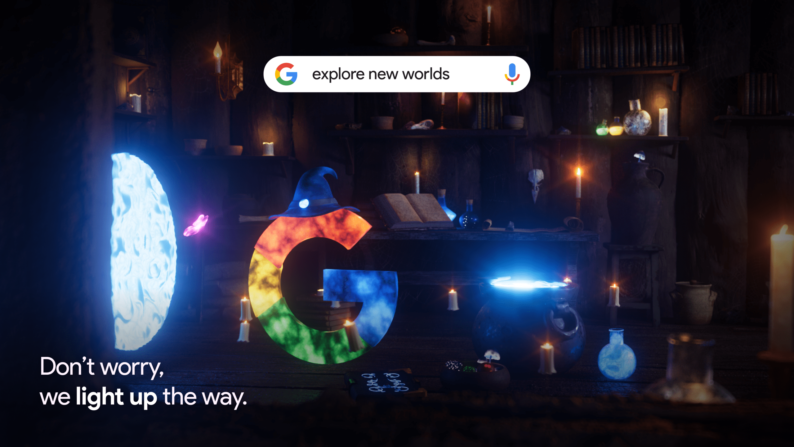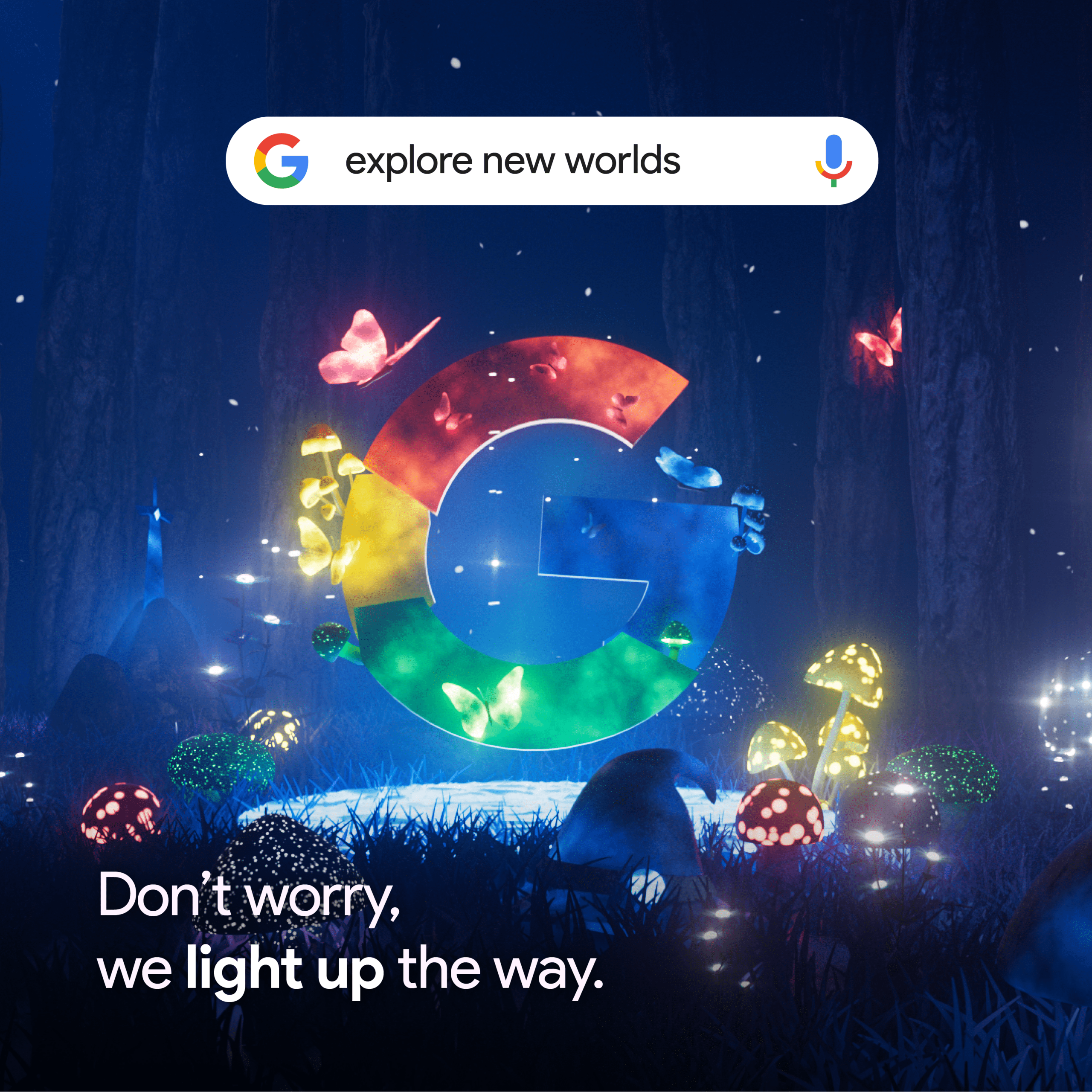 Exploration du texturing et de la 3D pour créer un univers fantastique autour de Google, symbolisé comme une lumière guidant l’exploration et la découverte. Inspirée par la magie et l’aventure, cette mise en scène mêle luminosité, détails narratifs et atmosphère immersive, pour traduire le rôle de Google comme guide dans un monde virtuel et merveilleux.